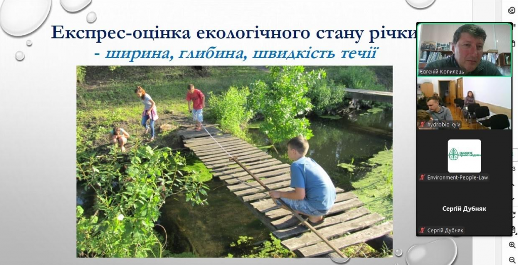 Асистент кафедри Євгеній Копилець виступив із доповіддю «Методика експрес-оцінки стану малої річки учнівською молоддю». У ній за допомогою конкретних прикладів було схарактеризовано методику, апробовану у низці краєзнавчих експедицій.