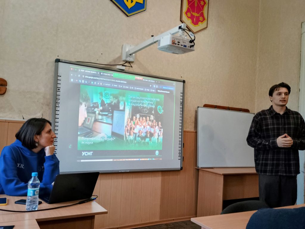2 грудня до університету на факультет історії та географії завітали представниками МГО студентів «Українська спілка молодих географів» (УСМГ) – Ігор Винник (драйвер освітньої платформи), Юлія Рольська (менеджерка з міжконгресся) та Анастасія Скубій (членкиня спілки), які презентували здобутки, цікаві проєкти і напрямки діяльності МГО.