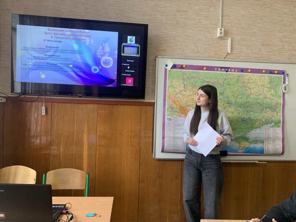 На початку учасників привітала випускниця кафедри а нині вчителька географії загальноосвітньої школи І-ІІІ ступенів №20 імені Бориса Серги Юлія Дубик. Майбутні вчителі продемонстрували фрагменти уроків, які вони проєктували і проводили в закладах загальної середньої освіти під час виробничої педагогічної практики як у офлайн-, так і онлайн- режимах.